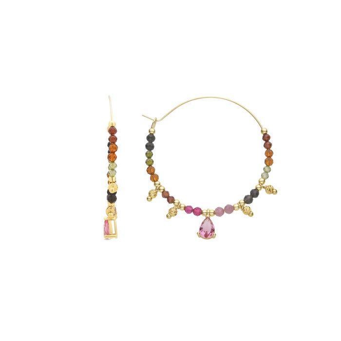 Luxenter Boucles d'oreilles Tourmaline multicolore finition en or jaune 18 carats - Baim