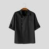 INCERUN Oversized Men Lapel Neck Half Sleeve Oblique Placket Casual Loose Shirts