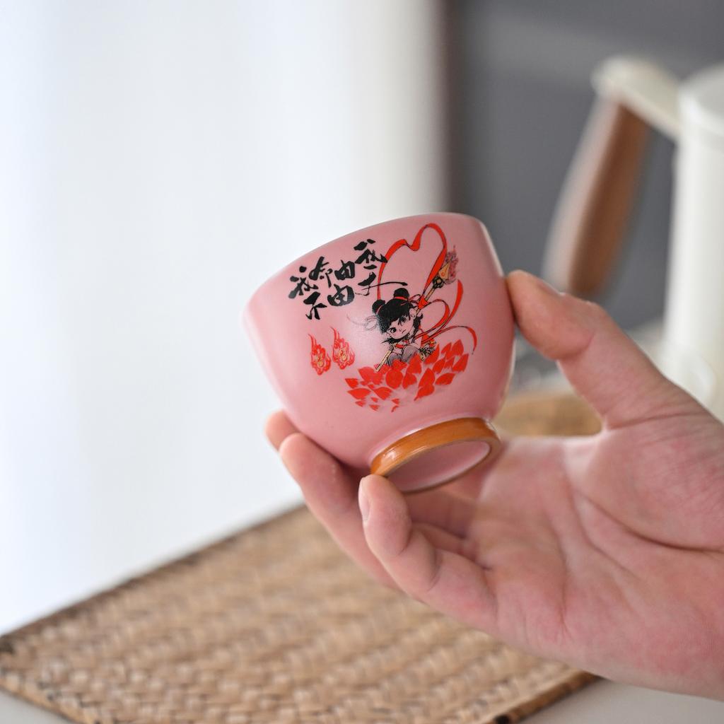 Ru Kiln Nezha Teacup Master Cup High-End Gift For Men And Women Personal Master Cup Figure Gift Tea Set