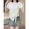 Tricou de damă cu mânecă scurtă, cu talie strânsă, cu bretele despicate, pentru vară, nou, la modă, cu croială slim