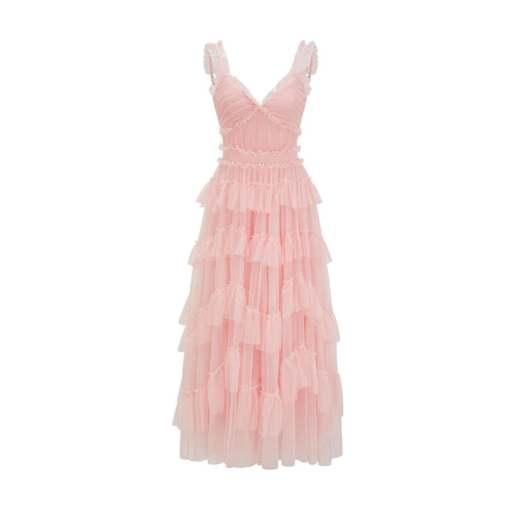 Rochie nouă drăguță cu bretele, cu decolteu în V, talie înaltă, rochie tort, rochie de zână