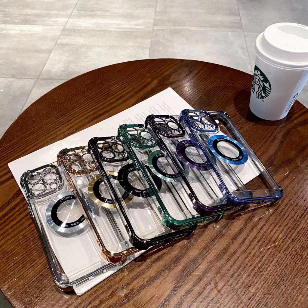 Applicable To IPhone 16 Magnetic Suction Phone Case with Four Corners of Leaking Marks and Anti-falling Apple Electroplated Airbag Protection Case