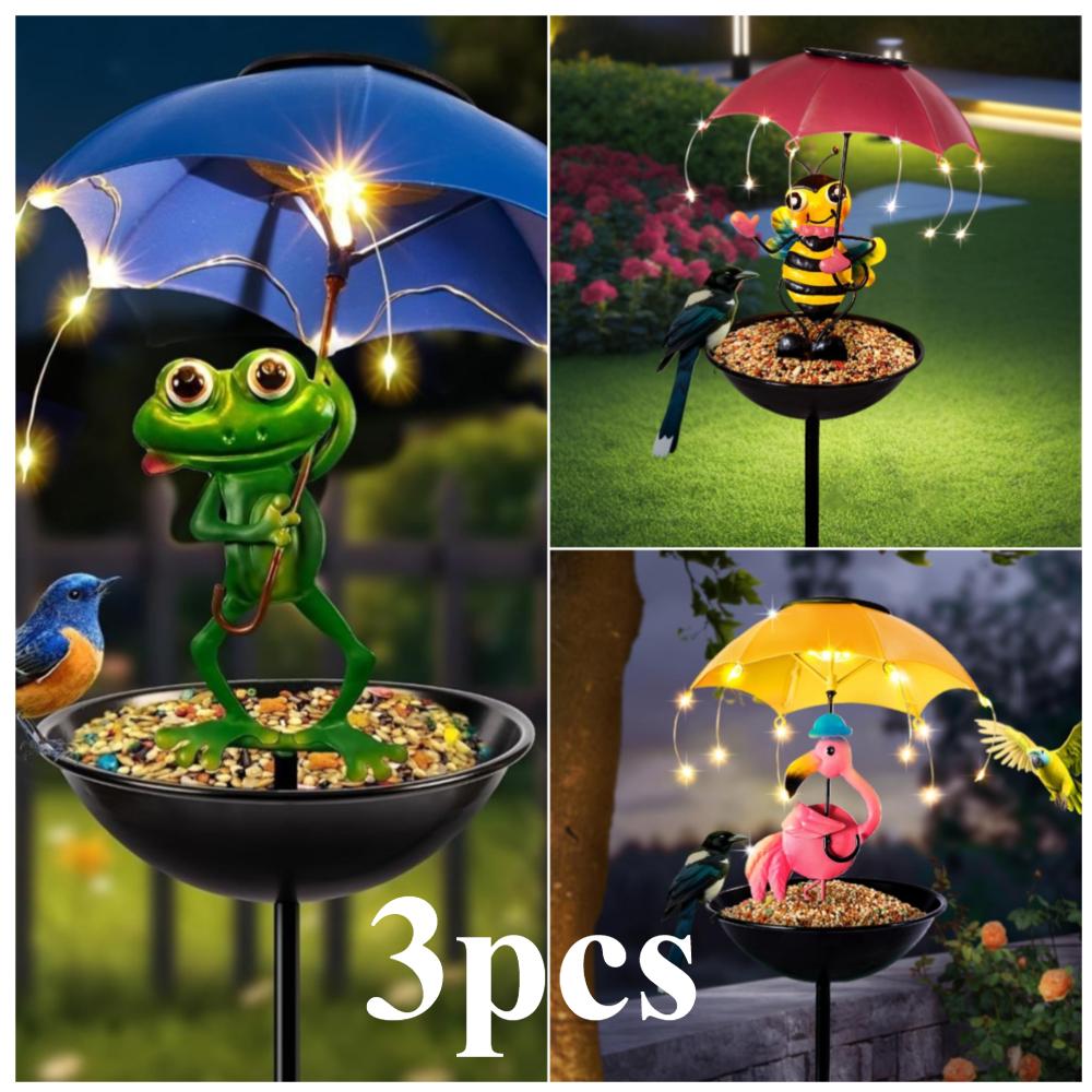 2 BUC/3 BUC Statuie de exterior din fier impermeabil lumină simulare animal lumină solară cu funcție de hrănitor albină și flamingo broască și pasăre colibri, decorație
