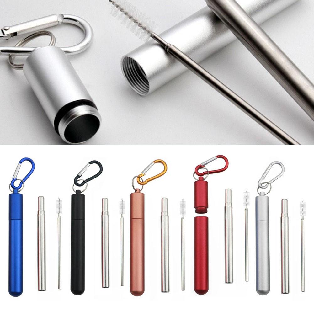 Collapsible Straw Set with Silicone Tips and Carabiner Hook