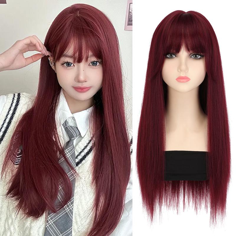 Perucă lungă dreaptă roșu zmeură pentru femei