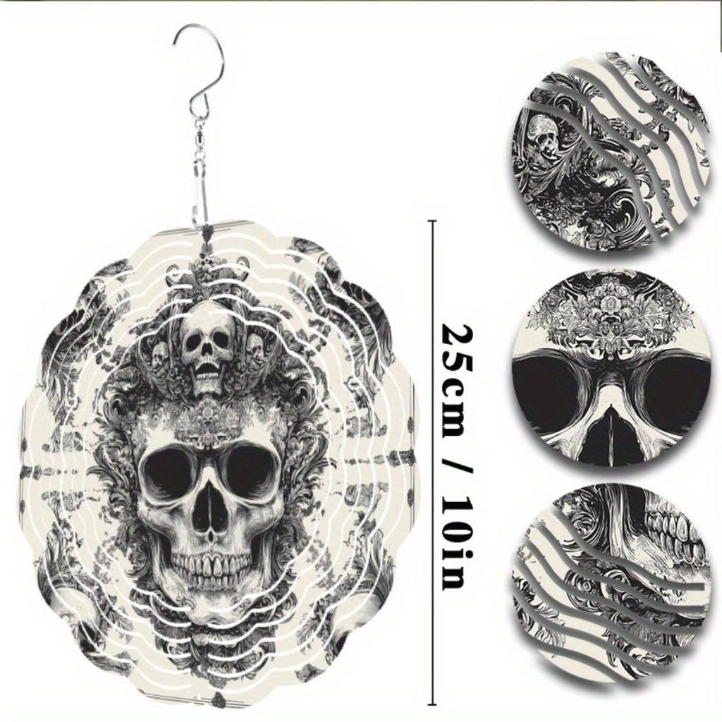 Metal Skull Wind Spinner - Intricate Engraved Design, Outdoor Hanging Decor for Garden and Patio, No Electricity Needed