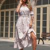 Summer new sweet girl wind lotus leaf edge floral shoulder dress