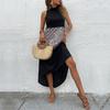 Summer new neck skirt slim sleeveless leopard print splicing dress