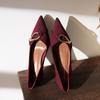 Burgundy temperament trip buckle high heels women's pointed toe thin heel suede single shoes wedding shoes bridesmaid shoes