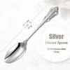 Set tacâmuri argintii din oțel inoxidabil, tacâmuri vintage, mâner gol, argintărie pentru nuntă, baroc, 18/10, auriu lucios