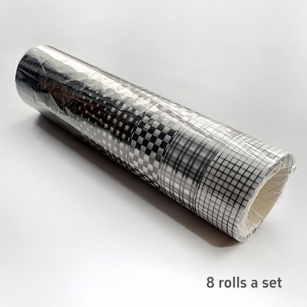 8 Rolls Plaid Washi Tapes, Black White Color Checkered Adhesive Masking Tape Classic Assorted Grid Decoration Stickers