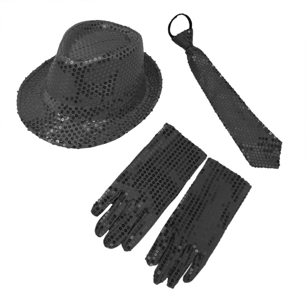 [Costum cu paiete pentru copii set 3 piese] Conținutul setului: Pălărie cu paiete + cravată + mănuși, raport calitate-preț ridicat. Culoare: Negru, Roșu, Argintiu, Albastru Mărime: mănuși: 16*8cm, Cravată: 8*33cm, Pălărie: Circumferinta capului 54 cm