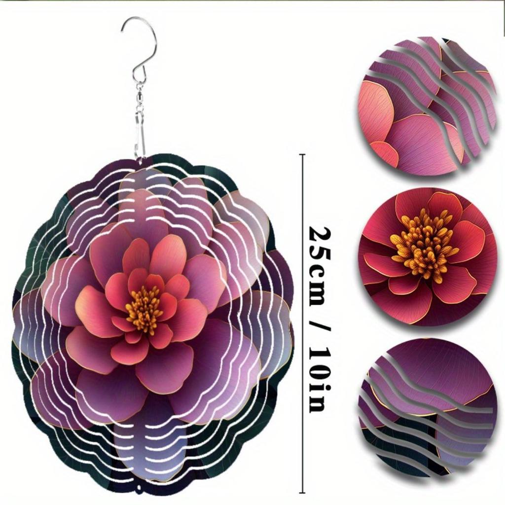 10 Inch Purple Flower Metal Wind Spinner with 360 Swivel Hook for Garden Patio Yard Outdoor Decor Christmas Thanksgiving Holiday