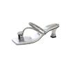 Medium heel slippers women's new summer outer wear with skirt fashion thick heel rhinestone cool slippers