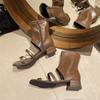 2025 new design sense niche black sandals women's summer square head thick heel cool boots hollow side zipper cover toe short boots