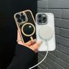 PC Electroplating Leakage Mark Magnetic Magnifying Glass Suitable for IPhone16promax Mobile Phone Case Apple 15 Transparent Protective Case