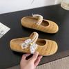 Bow pearl bag head half slippers women's summer wear with skirt thick bottom height fashion woven lazy cool slippers