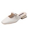 Leather Mary Jane sandals women's slippers low-heeled single shoes 2025 summer shallow thick heel small fragrant temperament single shoes women