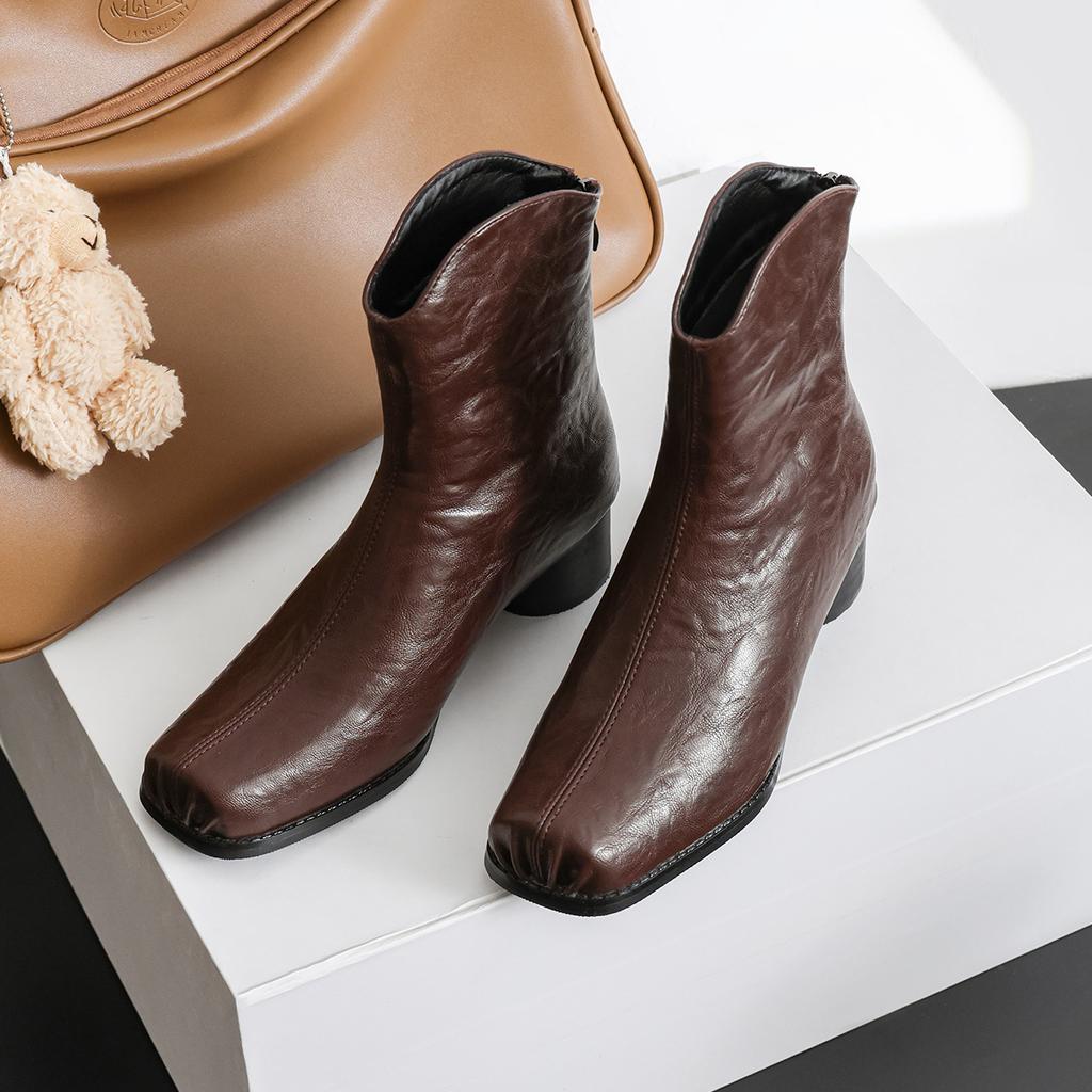 Ballet shoes women's boots pig nose leather single boots 2025 autumn and winter thin boots square head retro ballet short boots women