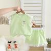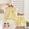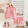 Introduce a touch of style and fun to your child's wardrobe with this charming 2-piece outfit, featuring a Korean lace T-shirt and shorts set designed specifically for the 2025 summer season. This adorable ensemble showcases a stylish cartoon design, offering a trendy look perfect for casual outings or playdates. Crafted from high-quality polyester material, this set ensures a comfortable fit and durability, ideal for active young girls. With its short-sleeve design and lightweight fabric, this outfit provides the perfect combination of style and comfort for warm weather adventures.