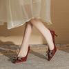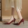 B temperament pointed head rivet bow high heels women's thin heel high-end versatile single shoes spring and autumn women