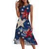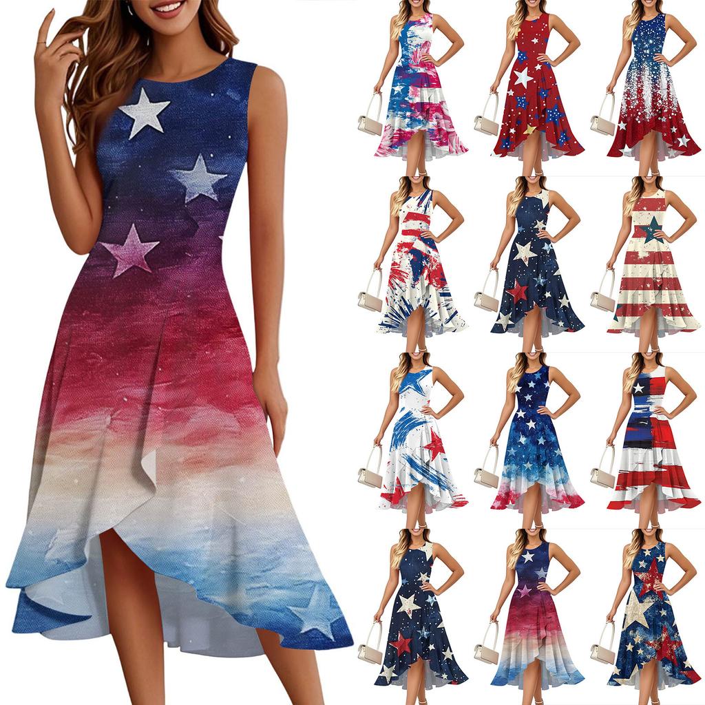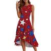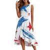 Women's Fashion Casual Zip Sleeveless Round Neck Independence Day Printed Elegant Temperament Ruffles Dress Dresses