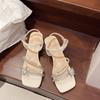 One word with high heels sandals women's new summer wear with skirt temperament fashionable versatile thick heel soft sole