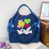 Large Capacity Embroidered Eco Nylon Shopping Tote - Versatile Shoulder/Handheld/Crossbody Bag