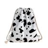 Rucsac cu gură cu șnur cu model de vacă, rucsac sport ușor pentru elevi de școală primară, bărbați și femei
