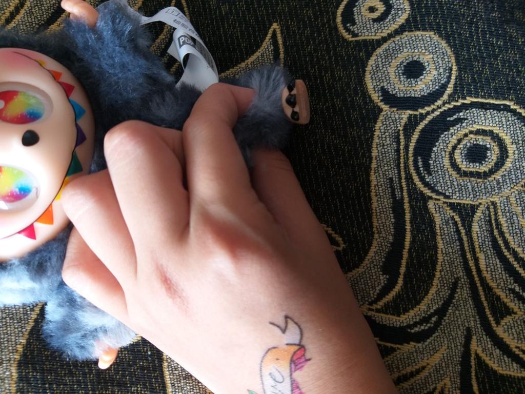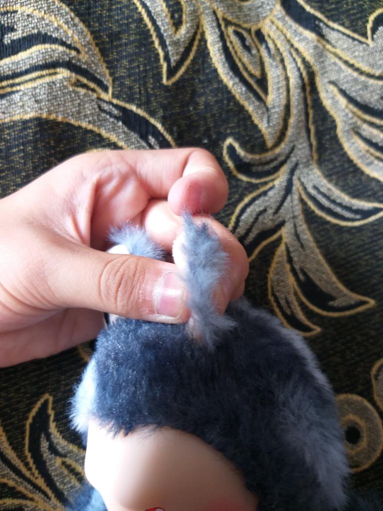 Groază Minus 1: împreună unde urechea gri este acolo fără puf Minus 2: și în mână Minus 3: și în picior, de asemenea Minus 4: are o gaură în spate