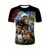 Men's 3D Print Wolf Pack Mountain Night Scene T-Shirt - Vivid Howling Wolves & Full Moon Graphic, Casual Short Sleeve Round Neck Tee