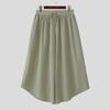 INCERUN Vintage Men Drawstring Elastic Waist Solid Color Texture Irregular Cropped Loose Pants