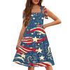 Children's Jumpsuit Cuffless Pocket Square Neck Casual Independence Day Print Dress