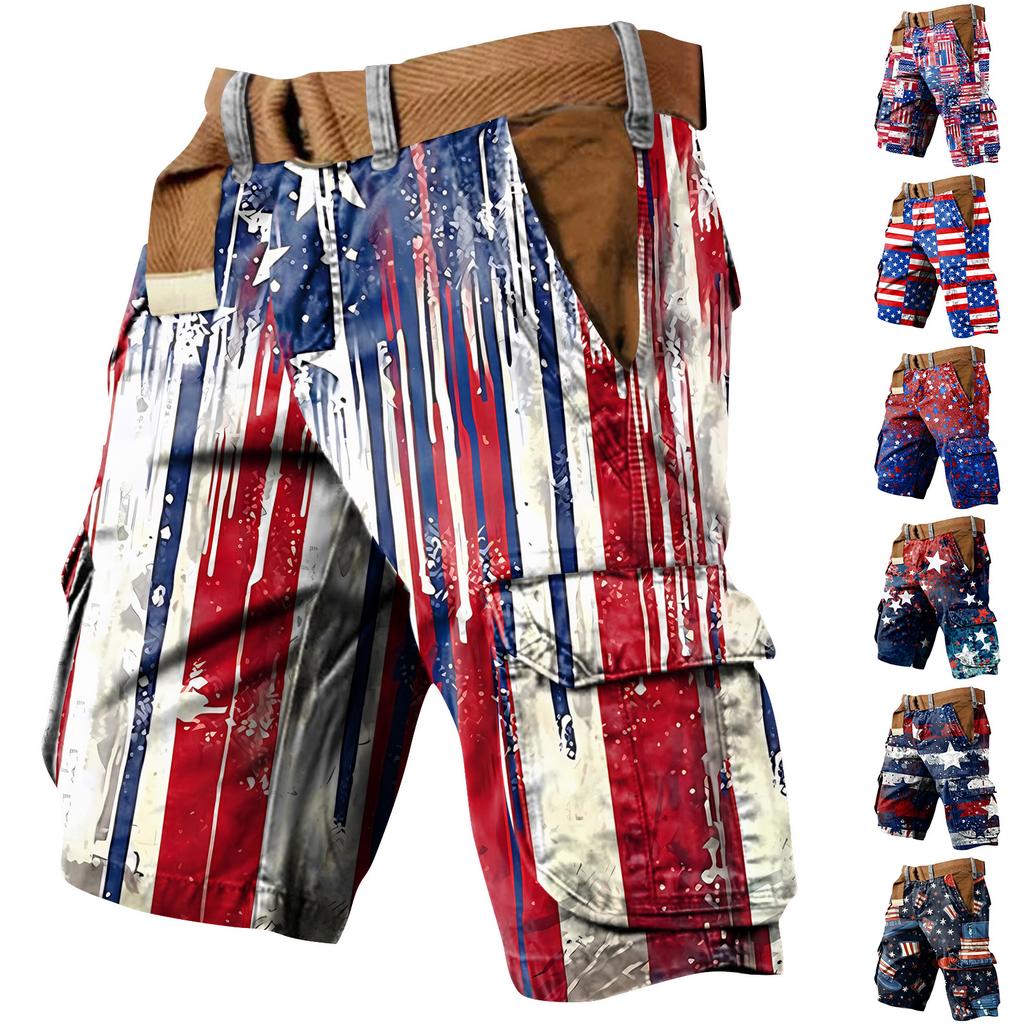 Men's Independence Day Printed Multi Pocket Workwear Shorts