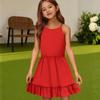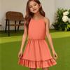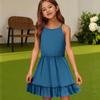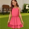 Children's Summer Casual Fashion Round Neck Solid Color Sleeveless Dress