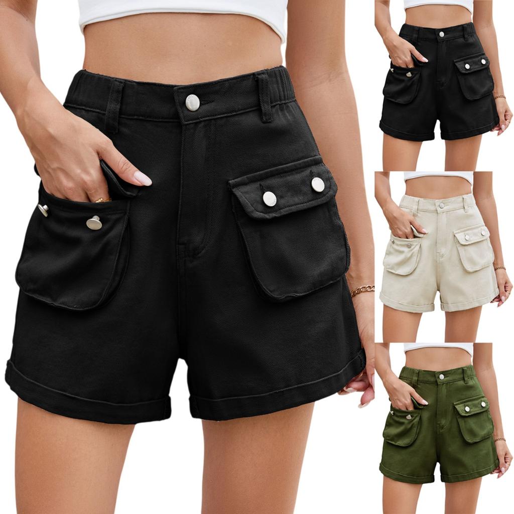 Ladies' Fashionable Sexy Solid Color Elastic Waist Workwear Casual Shorts