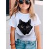 Tricou de vară cu mânecă scurtă pentru copii, fete, gât rotund, nou, cu imprimeu pisică, la modă, casual, versatil, topuri