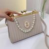 Geantă de umăr cu clemă de perle de lux pentru femei, genți de mesagerie cu lanț, verde, roz, alb, de designer, poșta de nuntă de nuntă
