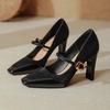 High-heeled Mary Jane shoes with red high heels thick heel sexy new splicing square head single shoes