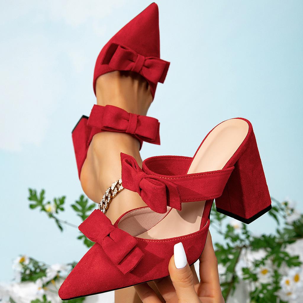 Women's shoes party party red high heels sandals thick heels high heels fashion pointed buckle simple high heels