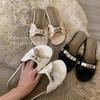 Papuci de damă noi de nișă cu vârf rotund, casuali, cu o singură bandă, cu încuietoare metalică la modă și model crocodil cu talpă plată