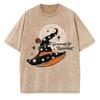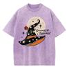 Halloween Print Women's T-Shirt Washed Denim Cotton Short Sleeve Oversized Crew Neck Top For Everyday Casual Wear