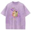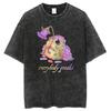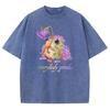 Colorful Frog Hot Stamping Print Women T-Shirt Washed Denim Oversized Couple Short Sleeve Unisex High Quality Tees Cute