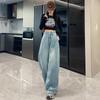 Blugi Retro Albaștri High Street cu Picior Larg pentru Femei Primăvara și Toamna Stil Nou Slim Fit Larg Acoperitor de Carne Pantaloni Drepți Căzuți