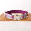 Personalized Dog Collar with Free Engraving, Matching Pet Leash,Customzied Contacts Metal Buckle, Purple Green Plaid Collar