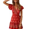 Summer V-neck Sexy Bohemian Print Dress Short Skirt Skirt Women Clothing