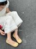 Korean comfortable soft leather soft sole fake toe single shoes women's new round head one pedal grandma ladyshoes