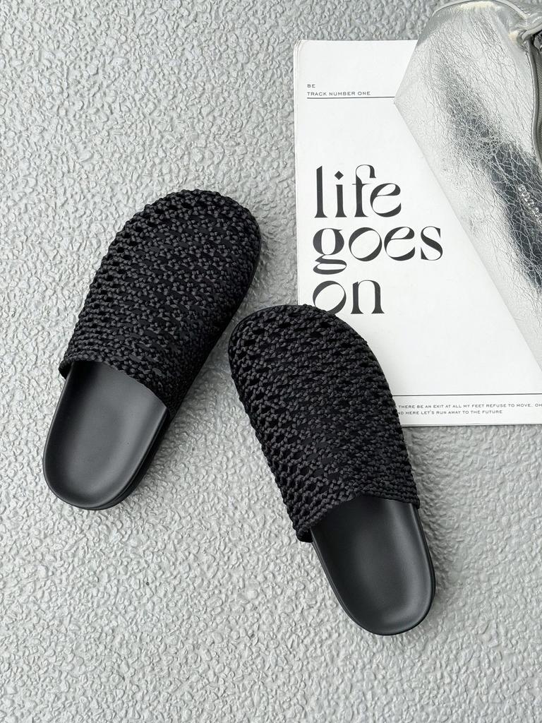 Woven hollowed-out baotou half slippers for women to wear summer new seaside beach thick-bottomed fishing net cool slippers