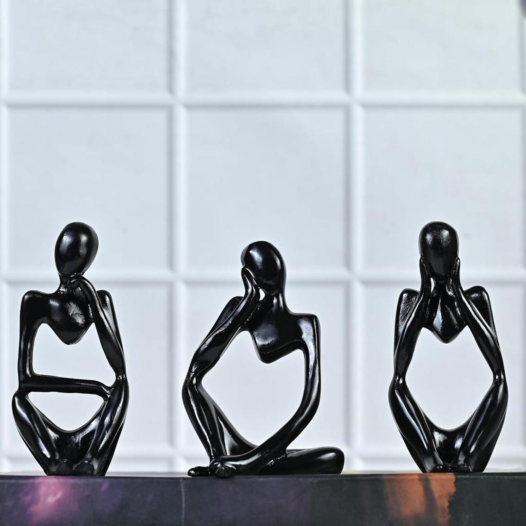 Design elegant și modern: Adăugați o notă de eleganță contemporană oricărei încăperi cu acest Set de 3 Statui Gânditor Negru.