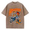Casual Womans Acid Wash T-Shirts Houston Skeleton Manga Prints Tops Distressed Crewneck Cotton Tee Shirts Clothes
